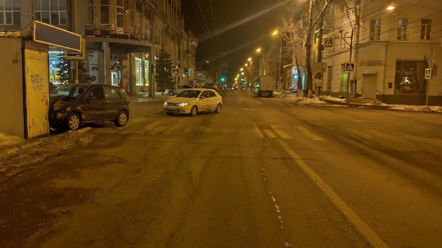 Ранее в Самаре (фото внизу) ровно в полночь 14 марта 36-летний водитель на Шевроле на уступил дорогу на Молодогвардейской и столкнулся с Фордом. От удара последний влетел в торговый павильон. Водитель Форда получил травмы.