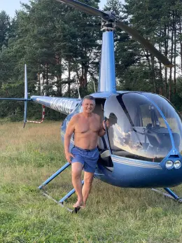 Сейчас доктор учится управлять вертолетом и опубликовал фото, на котором он в шортах стоит у винтокрылой машины.