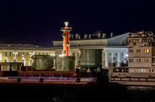 Судя по фото, которое выложили в официальной группе сызранского завода в социальной сети «ВКонтакте», многотонное оборудование для АЭС доставляли по Неве через центр Санкт-Петербурга.