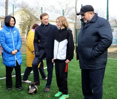 Следующей точкой посещения участников мероприятия стала МБОУ «Школа № 87 имени Г.И.Герасименко». У школы нет своей спортивной площадки, но есть большая территория, которую освободили от гаражей и мусора, оформили документы на землю. И руководство школы вышло с просьбой установить спортивную площадку на этой территории.