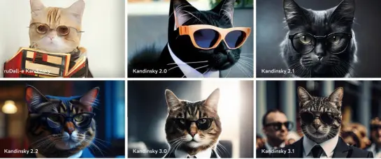 На текущий момент линейка Kandinsky* представлена тремя семействами моделей генерации изображений по тексту и отражает прогресс по созданию и обучению такого рода моделей в мире: это авторегрессионные трансформерные модели ruDALL-E* и Kandinsky* 1.0, диффузионные модели с image prior-блоком Kandinsky* 2.0, 2.1 и 2.2 и диффузионные модели Kandinsky* 3.0 и 3.1. Также нами было разработано семейство моделей Kandinsky Video (*Кандински видео) (1.0 и 1.1) для генерации полноценных видео по тексту.