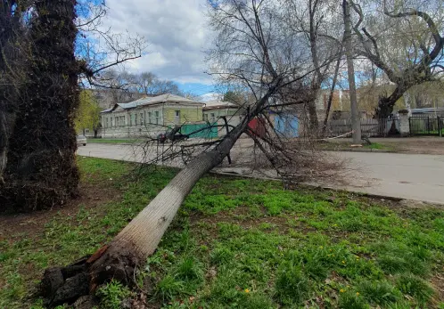 Инцидент произошел сегодня, 23 апреля, во второй половине дня на улице Карла Маркса. В районе дома №113 дерево переломилось у самого основания и упало на проезжую часть.