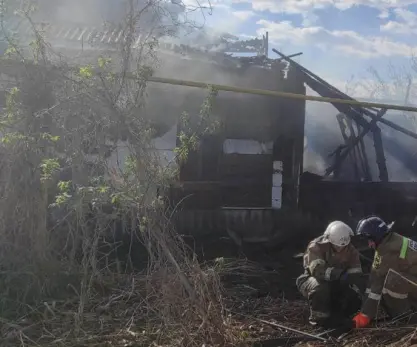 Причины возгорания не сообщаются. Вчера, 22 апреля, в Октябрьске тушили заброшенный дом.