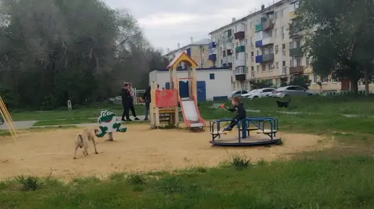 На снятых местными жителями кадрах видно, как собаки разгуливают по площадке, где играют маленькие дети.