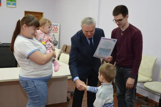 Свидетельства в торжественной обстановке молодым семьям вручил мэр Октябрьска Владимир Ревин.