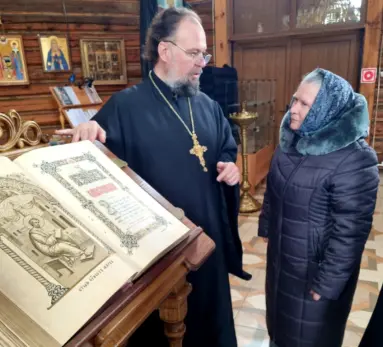 Игумен Марк показал своим прихожанам книгу весом в 9 килограмм