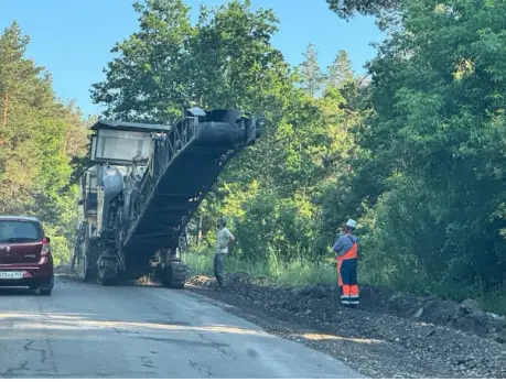 На дороге, которая ведет к турбазам, уже в конце мая дорожная техника фрезой срезала старый асфальт.
