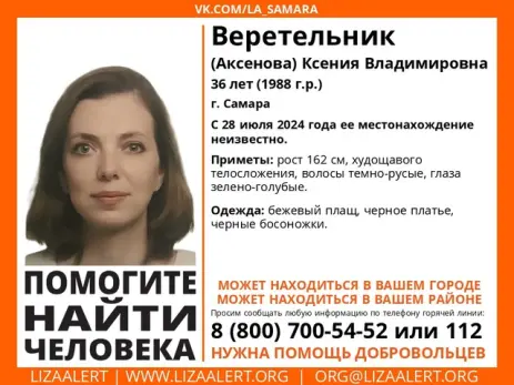 Известный в Самаре фотограф 36-летняя Ксения Веретельник перестала выходить на связь с воскресенья, 28 июля.