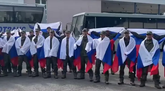 Минобороны РФ обнародовало видео с новой группой вернувшихся из плена военных