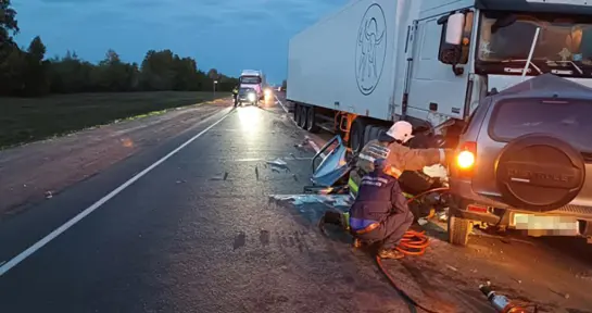 Мощный удар фуры на трассе М-5 смял внедорожник как консервную банку