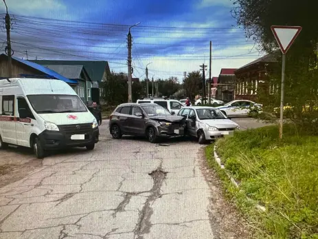 По предварительной информации, водитель на «Калине» собирался проехать перекресток прямо по улице Крупская, но маневр завершить не успел. Едущий по главной улице Фрунзе кроссовер, протаранил вазовскую легковушку и снес ее к бордюру, выбив правое переднее колесо.