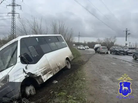 Автобус после столкновения съехал с дороги и завалился на бок. По данным правоохранителей, в автобусе момент аварии находилось четыре пассажира.