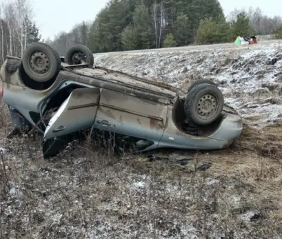 На трассе под Сызранью Калина завалилась на крышу: прибыли спасатели