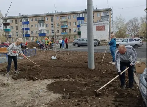 Жильцы вместе с сотрудниками Управляющих компаний "Юго-Запад" и "Провинция" убрали мусор с дворовой территории и подготовили палисадники к посадке зелёных насаждений. Был завезен грунт, который аккуратно разровняли.