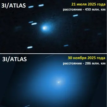 Напомним, что расчетная дата максимального сближения объекта с Землей - 19 декабря. В настоящий момент 3I/ATLAS сокращает расстояние до нашей планеты на два миллиона километров в сутки.