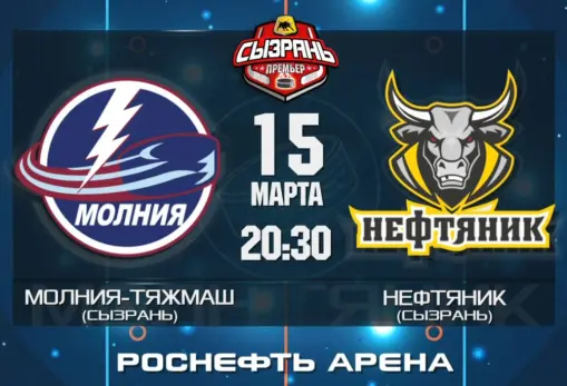 Сегодня вечером, 15 марта, в Сызрани сойдутся непримиримые соперники. На льду «Роснефть Арена» встретятся «Нефтяник» и «Молнии-Тяжмаш».