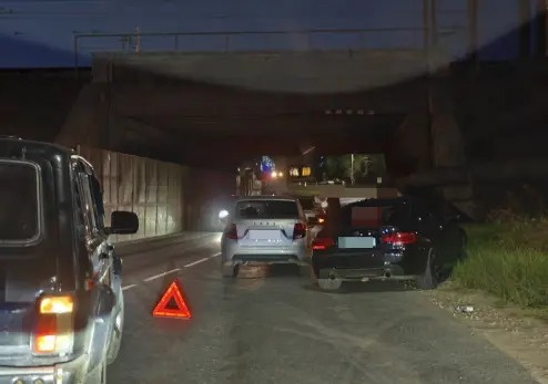 Чуть позже, в районе 21.00 на нижнем кольце Монгоры на въезде столкнулись еще две машины. Никто из водителей не хотел уступать.