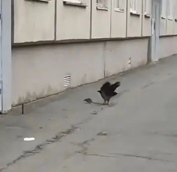 Оборзевшие вороны устроили эпичную драку с крысой - видео