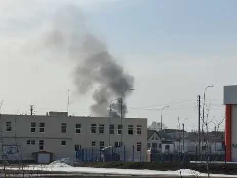 В районе улицы Фрунзе над городом поднимается густой черный дым. Очевидцы сообщили, что одновременно с пожаром слышали громкий хлопок.
