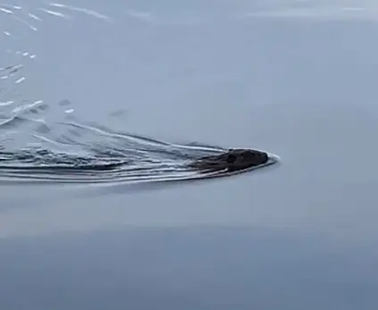 На видео бобр степенно перемещается по водной глади по своим делам, а в какой-то момент ныряет, громко хлопнув хвостом.