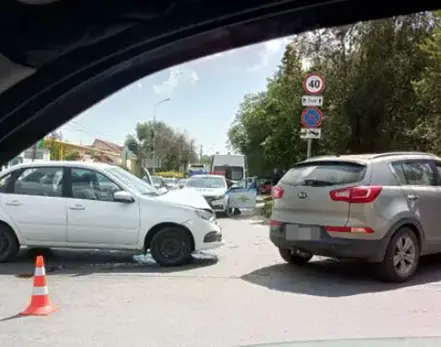 Здесь сегодня в середине дня столкнулись Lada Granta и KIA Sportage.