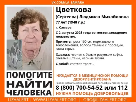 В Самарской области ищут попутчиков без вести пропавшей пенсионерки Людмилы Цветковой. 77-летняя дезориентированная женщина в половине десятого утра, 2 августа, уехала на электричке из Самары в сторону Сызрани.