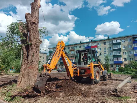 Пригнали технику: в сызранском дворе снесли деревья и световые опоры
