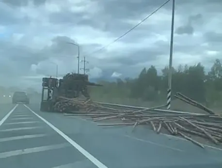 На кадрах, снятыми очевидцами, видны последствия дорожного инцидента. Прицеп грузовика, груженого бревнами, в какой-то момент завалился на бок и рухнул на проезжую часть. Весь груз высыпался на обочину и кювет, по счастливой случайности не задев проезжающие мимо автомобили. Тем не менее, информация о пострадавших пока не поступала.