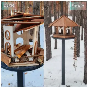 Разрушенную хулиганами столовую для белок починил сызранский мастер Беляков