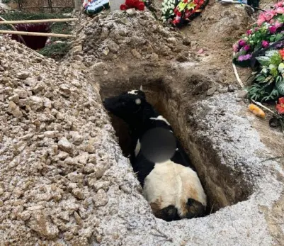 Рогатый зверь улегся в свежевырытую для покойника могилу