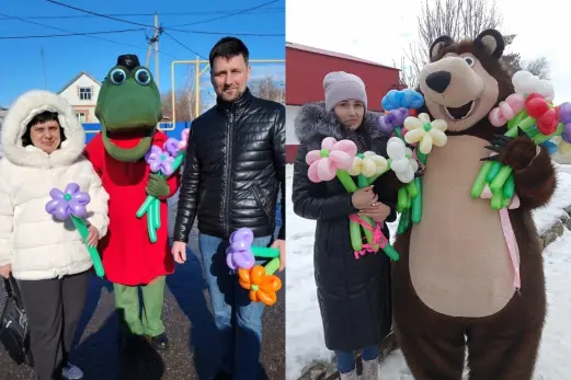 В субботу, 8 марта, жители Октябрьска стали свидетелями необычной картины. По улицам города бегали сказочные персонажи – крокодил Гена и Медведь.