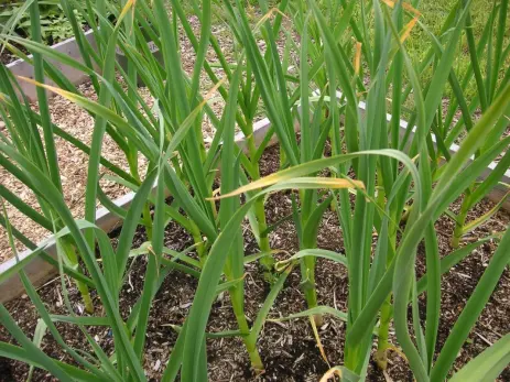 Для пожелтения пера у чеснока есть несколько причин. Первая - это, конечно, солнце, вторая - нехватка важных элементов в почве, в первую очередь азота.