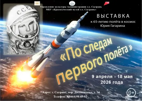 Выставка «По следам первого полёта» будет проходить в краеведческом музее Сызрани (пер. Достоевского, 34) до 18 мая. Подробности - здесь.