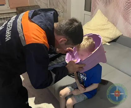 В России спасли шестилетнего мальчика, застрявшего головой в горшке. К спасателям с просьбой о помощи обратились родители малыша.