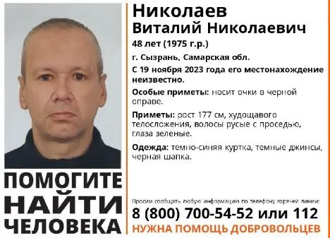 В поисковом отряде «ЛизаАлерт» сообщили, что Виталий Николаевич Николаев пропал еще две недели назад - 19 ноября 2023 года. В настоящее время местонахождение жителя города неизвестно.
