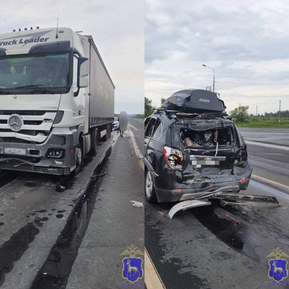 По данным полиции, 33-летний водитель большегруза Mercedes врезался в остановившийся попутный кроссовер Chevrolet Captiva под управлением 27-летнего водителя.