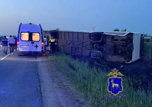 В больницу доставлены раненые пассажиры перевернувшегося в Самарской области автобуса