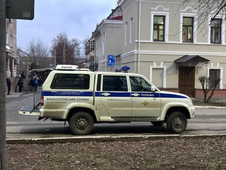 На месте также кинологическая служба, экипаж патрульно-постовой полиции и медики скорой помощи. В здание музыкальной школы зашел кинолог с собакой.