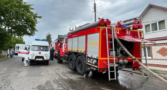 По предварительным данным, источник возгорания находится под кровлей здания, в котором проживают две семьи. В результате ЧП пострадала пожилая женщина, сейчас она находится в машине скорой помощи.