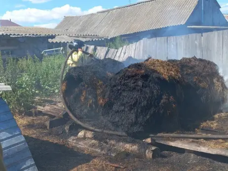 По данным центра по делам ГО, ПБ и ЧС, в 10:28 пожарные стянулись к частному подворью, где горели тюки травяного корма, массой в тонну. Чтобы ликвидировать возгорание, пожарному расчету потребовалось более полутора часов.