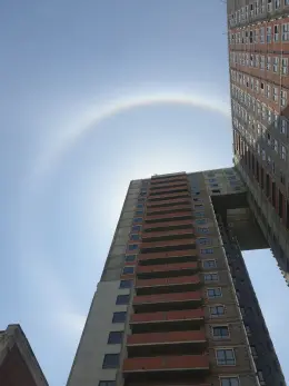 На снимке, опубликованном в самарском паблике, гало достаточно интересно разместилось – прямо над домом, словно приобняло высотку.