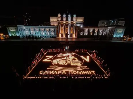 На площади Куйбышева в Самаре из 35 тысяч свечей выстроили символы Победы: штурмовик «Ил-2», паровоз «Лебедянка» и Георгиевскую ленту. Завершили композицию надпись «Самара помнит» и символы современной борьбы с нацизмом - Знаки V и Z.