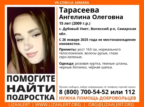 В Самарской области ищут 15-летнюю Ангелину Тарасееву. Девушка пропала 26 января в селе Дубовый Умет в Волжском районе. Ориентировку с приметами пропавшей школьницы распространил поисковый отряд «Лиза Алерт».
