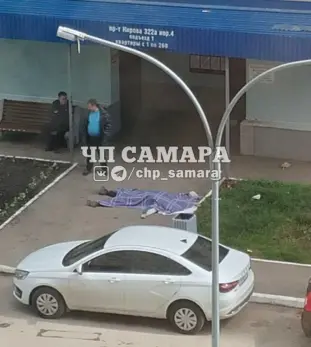 Фото с места происшествия утром 24 мая опубликовал Телеграм-канал «ЧП Самара». На снимке видно, что у подъезда лежит человек накрытый покрывалом.