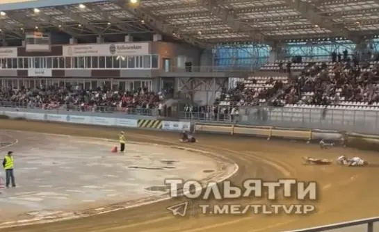 Крупное ДТП произошло на трассе по спидвею в Тольятти, где в выходные проходил чемпионат России. Момент столкновения сняли на видео зрители с трибун. На кадрах видно, как группа гонщиков заходила в поворот. В этот момент один из спортсменов не удержал мотоцикл, который встал на дыбы, завалился и столкнулся с другим участниками. В итоге трое мотогонщиков упали с мотоциклов, а один из них отлетел в ограждения.