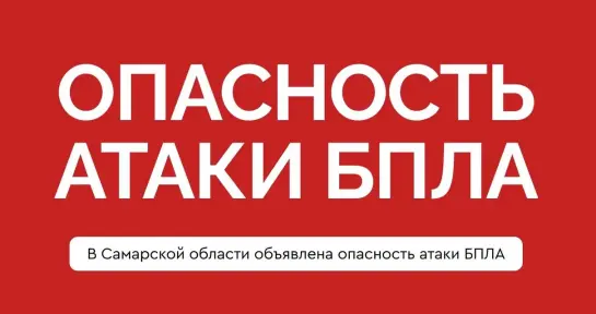 - Внимание! На территории Самарской области объявлена угроза подлета БПЛА, - говорится в сообщении.