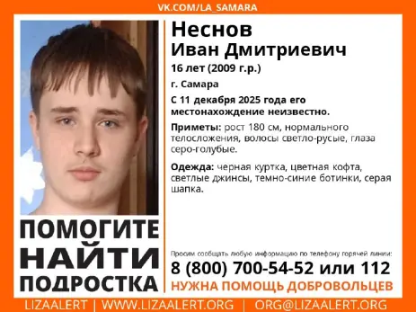 В Самарской области ищут 16-летнего Ивана Неснова. Подросток пропал 11 декабря в городе Самаре. Ориентировку с приметами пропавшего только-что распространил поисковый отряд «Лиза Алерт».