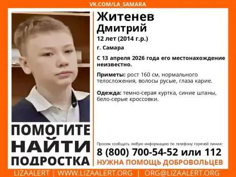В Самарской области пропал второй ребенок подряд. Поисковый отряд «Лиза Алерт» только-что распространил ориентировку с приметами пропавшего Дмитрия Житенева. Двенадцатилетний мальчик 13 апреля пропал в городе Самаре.