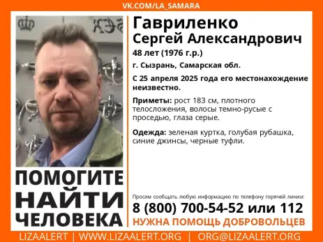 В Сызрани ищут бесследно пропавшего 48-летнего Сергея Гавриленко. О пропаже мужчины только что сообщили в поисково-спасательном отряде «Лиза Алерт». О местонахождении и судьбе пропавшего ничего не известно с 25 апреля.