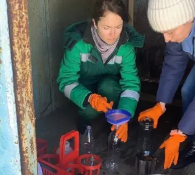 Инспекторы управления осмотрели производственную площадку очистных сооружений и вместе с сотрудниками лаборатории отобрали пробы сбрасываемой сточной воды.